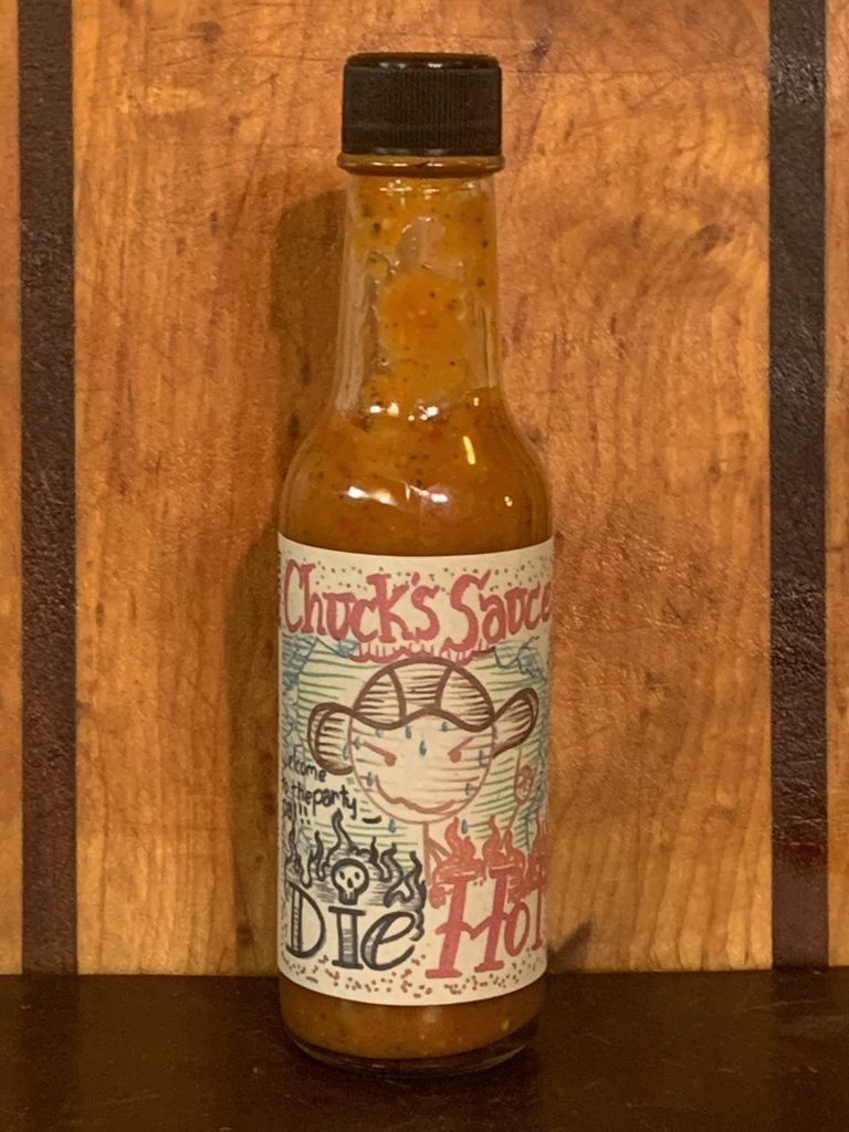 Hot Peppers (Ghost, scotch bonnet, 7 pot, carolina reaper, scorpion), sweet peppers, homestead grown tomatoes, peaches, onions, apple cider vinegar, lemon juice, apple juice, local sourced honey, turbanido sugar, sea salt, black pepper, Volcano powder (Ghost, scorpion, 7pot peppers), olive oil, potato starch
